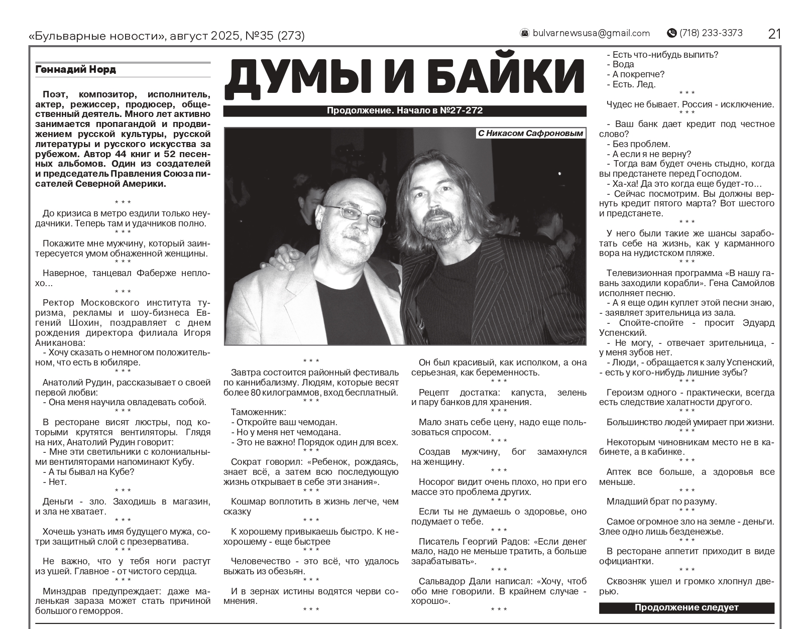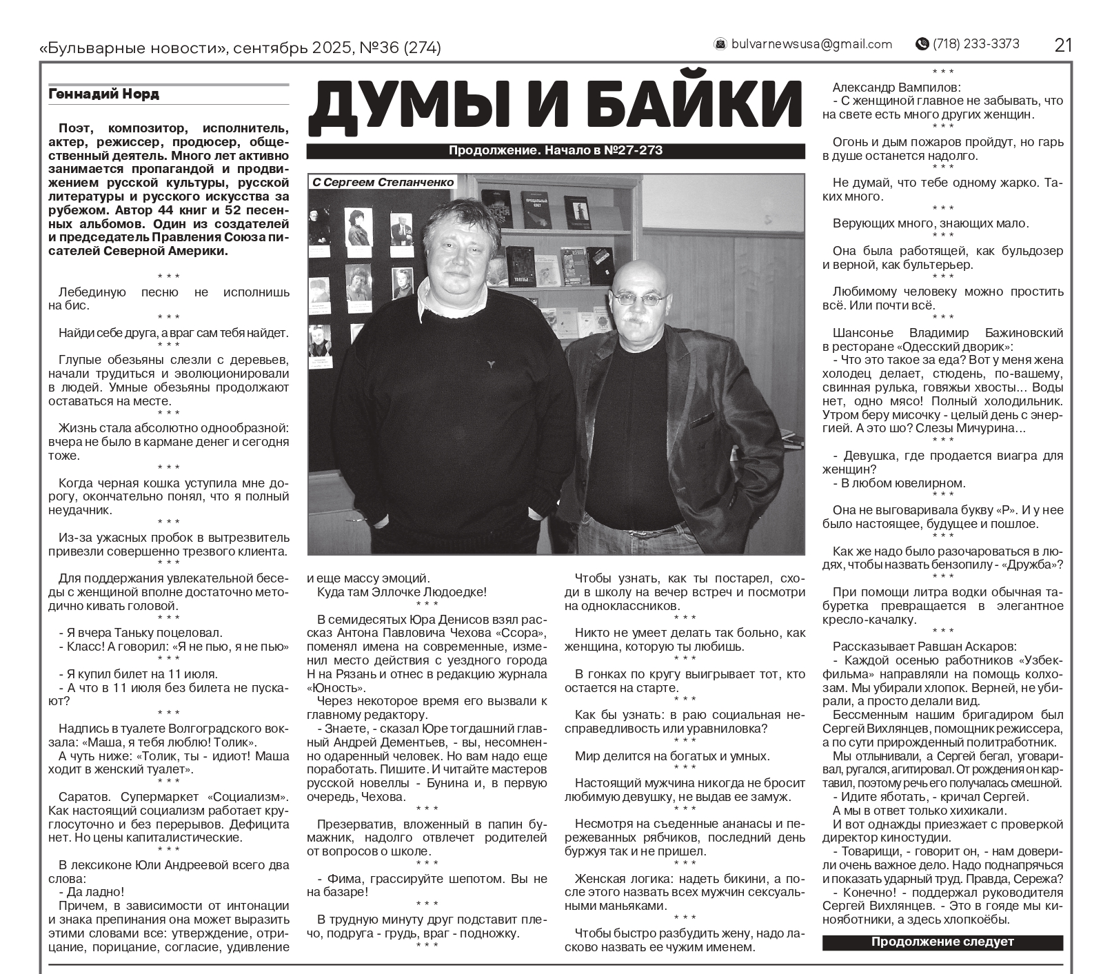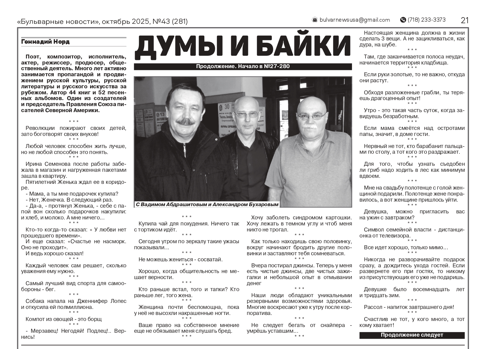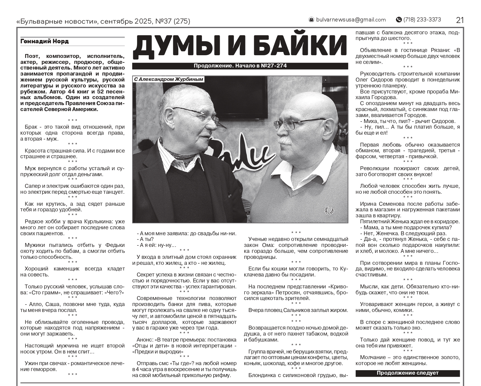 В газете «Бульварные новости» продолжается публикация баек из серии книг Геннадия Норда «Заметки из барсетки»