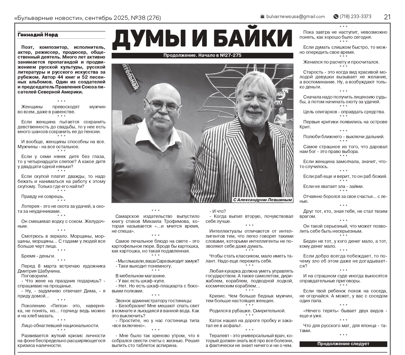 В газете «Бульварные новости» опубликован материал Алекса Сино «Воланд в Нью-Йорке. 2025 год». Иллюстрации автора.